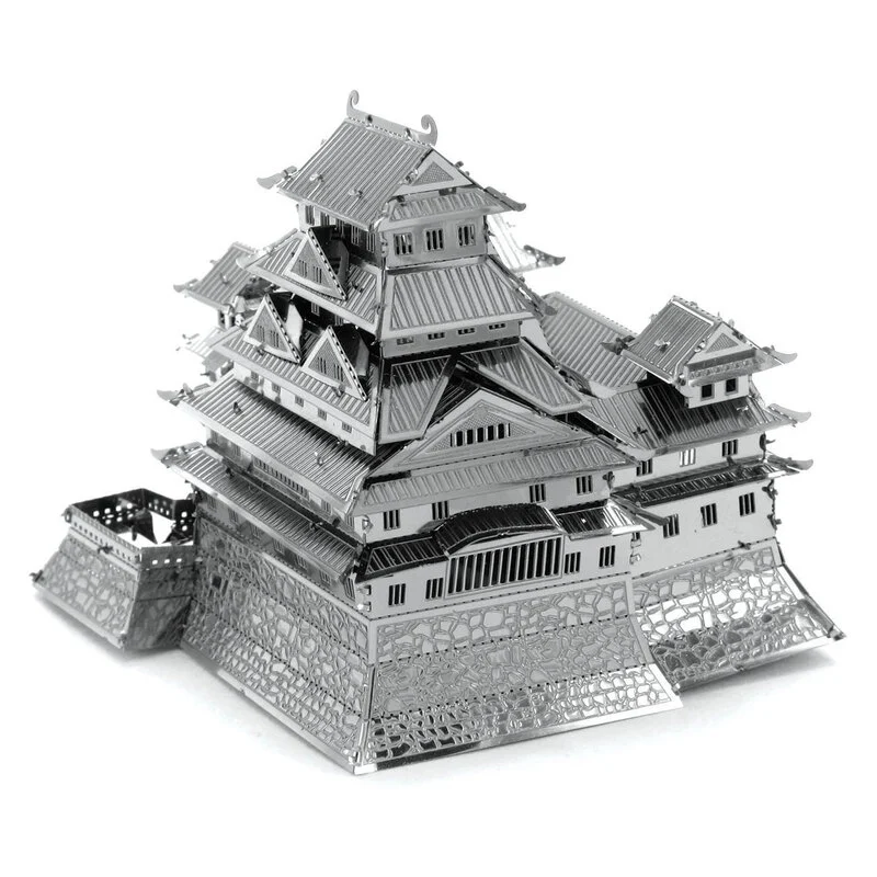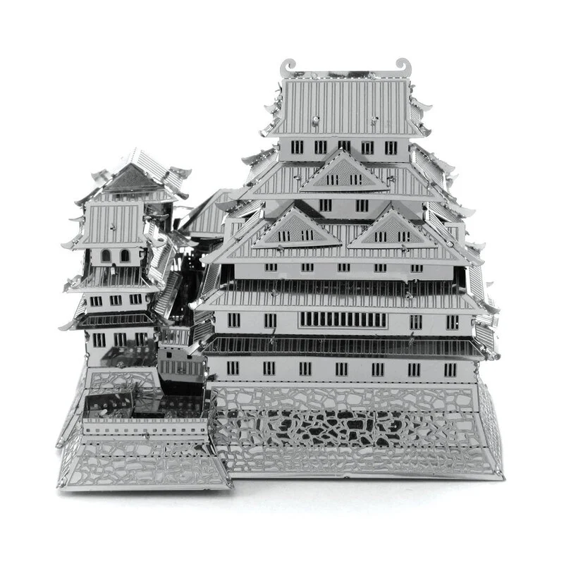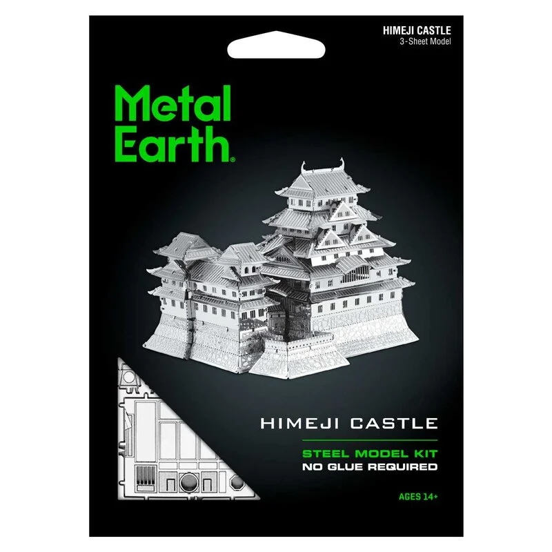 MetalEarth Architecture: HIMEJI CASTLE 7.2×6.9x6cm, maquette 3D en métal avec 3 feuilles, sur carte 12x17cm, 14+