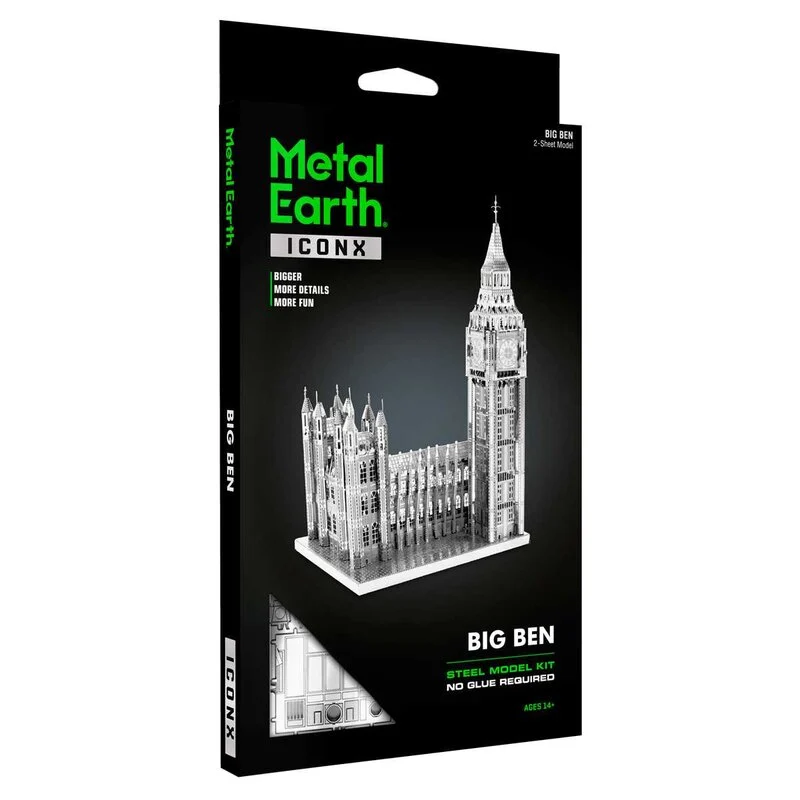 MetalEarth: ICONX – BIG BEN 12,7x6x8cm, maquette 3D en métal avec 2 feuilles, en boîte 13,5x22x2cm, 14+