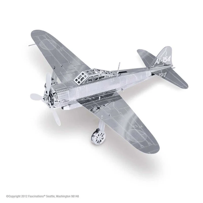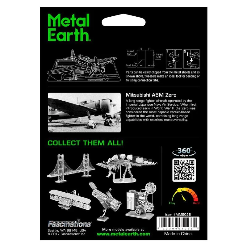 MetalEarth Aviation: MITSUBISHI ZERO 12.5x10x2cm, maquette 3D en métal avec 1 feuille, sur carte 12x17cm, 14+