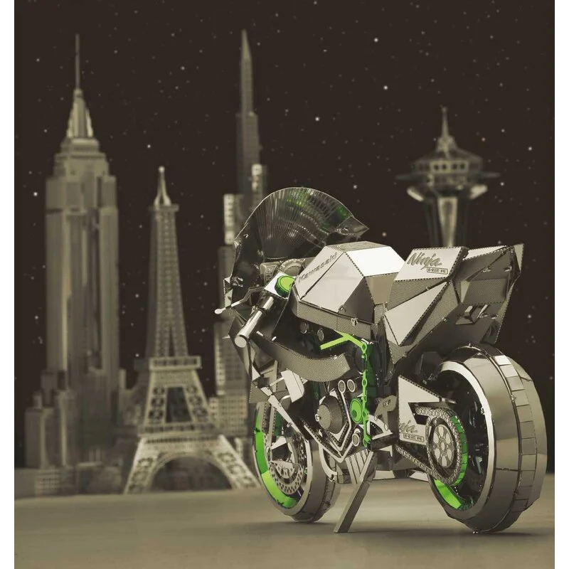 MetalEarth: ICONX – KAWASAKI NINJA 12.19×5.08×7.62cm, maquette 3D en métal avec 2 feuilles, en boîte 13,5x22x2cm, 14+