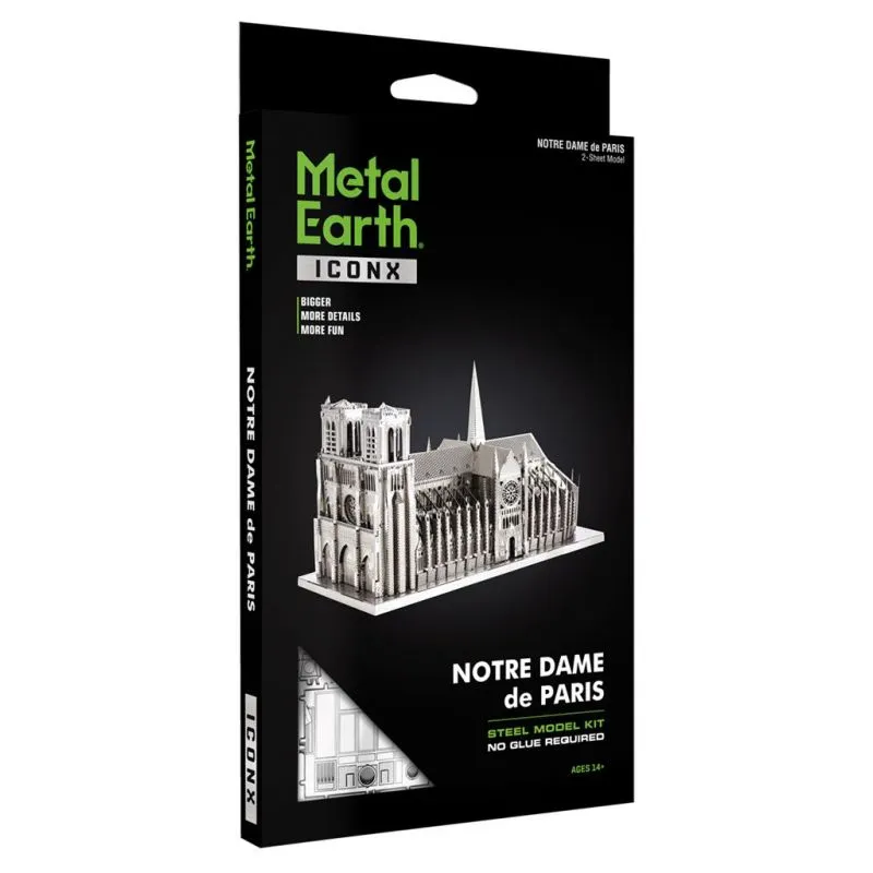 MetalEarth: ICONX – NOTRE DAME 8×11,7x5cm, maquette 3D en métal avec 2 feuilles, en boîte 13,5x22x2cm, 14+