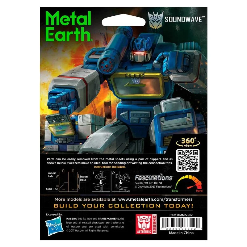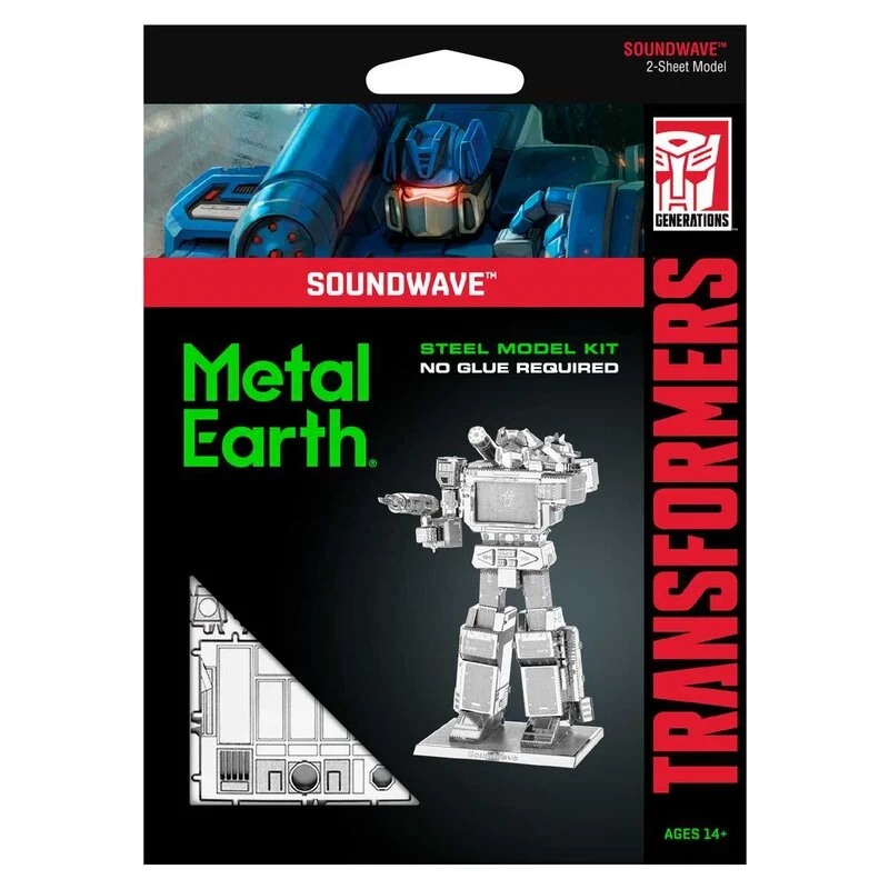 MetalEarth: TRANSFORMERS/SOUNDWAVE 5.1×3.5×8.6cm, maquette 3D en métal avec 2 feuilles, sur carte 12x17cm, 14+