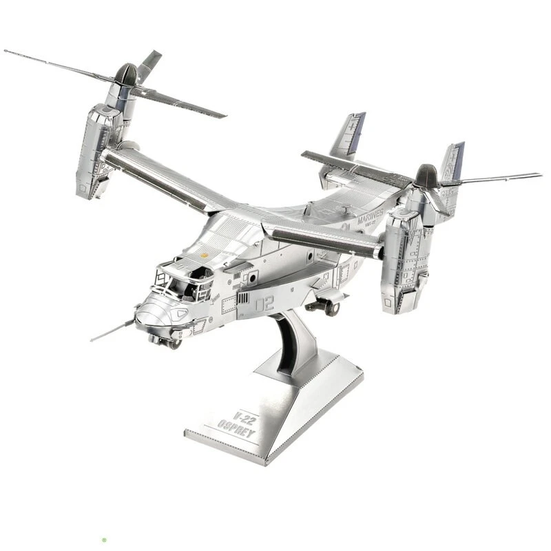 MetalEarth Aviation: V-22 OSPREY 13.21×13.21×7.87cm, maquette 3D en métal avec 2.5 feuilles multicolorées, sur carte 12x17cm, 14+