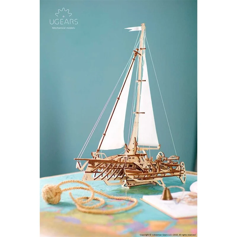 Le modèle Trimaran est un voilier multicoque classique conçu pour montrer de nombreux détails tels que des treuils, des gréements et des coques, ce qui en fait une copie miniature très réaliste de prototypes réels.